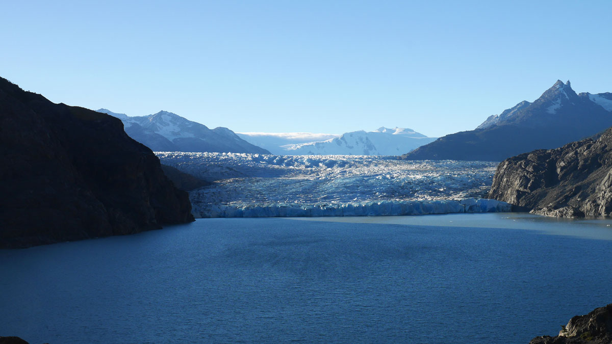 To zwieńczenie jednej części litery „W” szlaku po parku Torres del Paine. Olbrzymi lodowiec zasilający w wodę jezioro o tej samej nazwie – Grey ma 6 km szerokości , 30 m wysokości i zajmuje powierzchnię ponad 270 km2. Tę lodową potęgę można podziwiać naprawdę z bliska, z zawieszonego nad czołem lodowca wiszącego mostku dla pieszych lub podpływając do niego kajakiem.